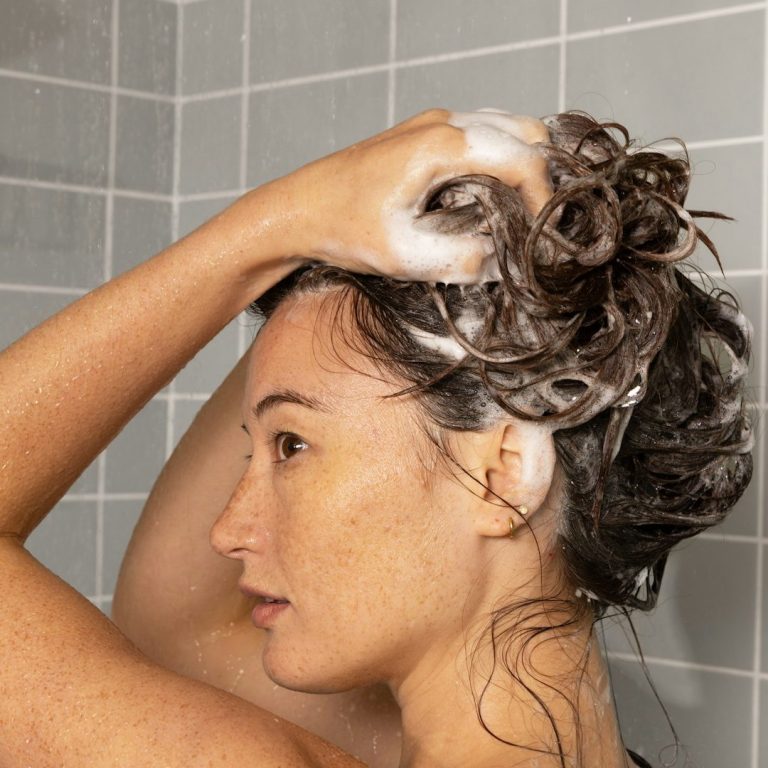Nasse Haare sind deutlich empfindlicher als trockene. Löse also vor der Dusche oder Haarwäsche schon alle vorhandenen Knötchen und kämme Deine Haare gründlich, aber sanft durch.