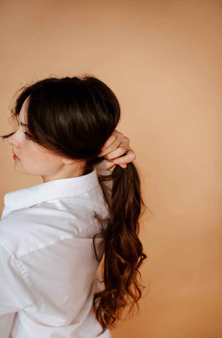 - Binde Dir einen festen Pferdeschwanz tief im Nacken.